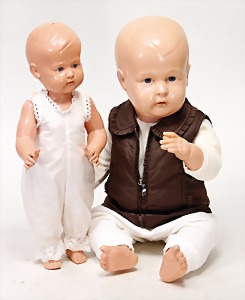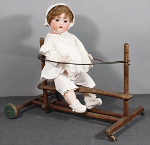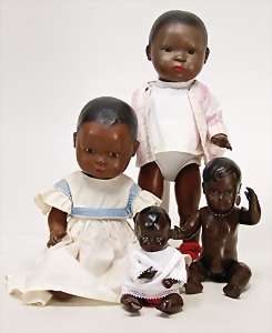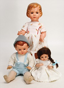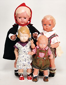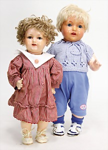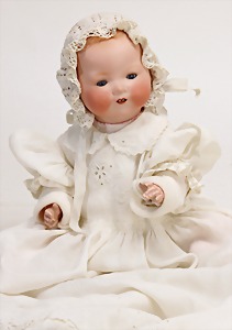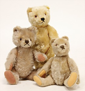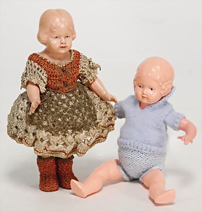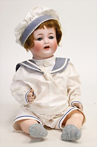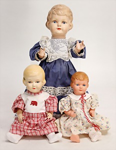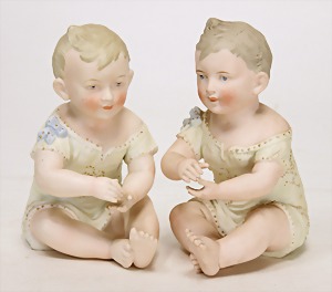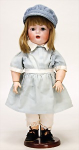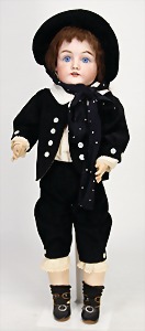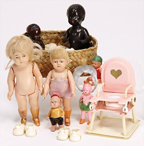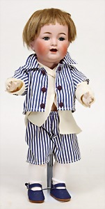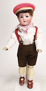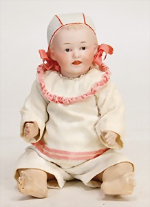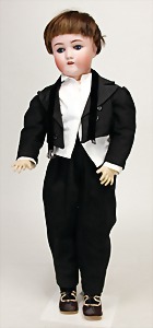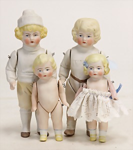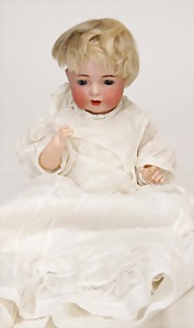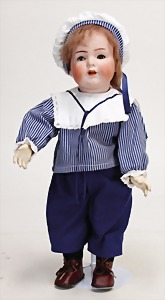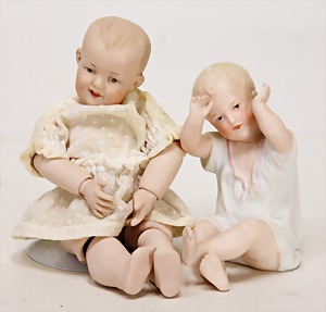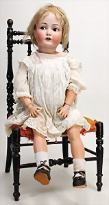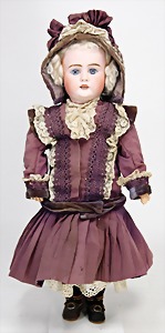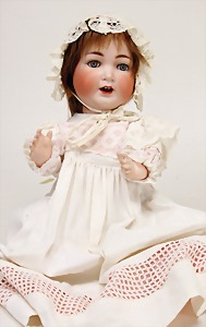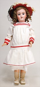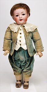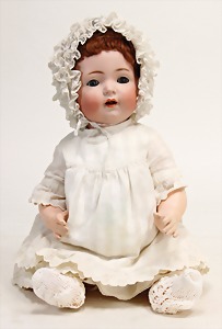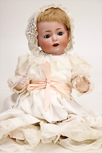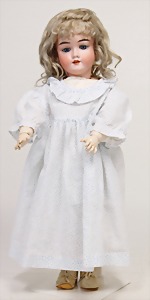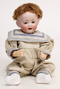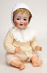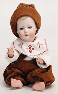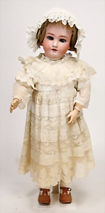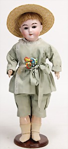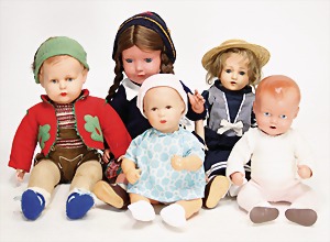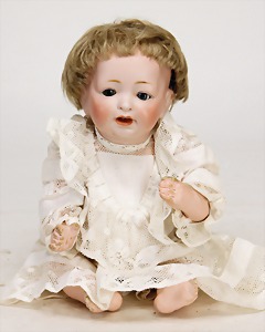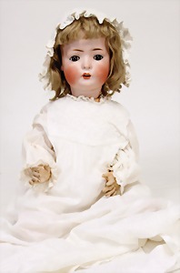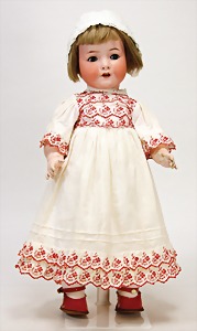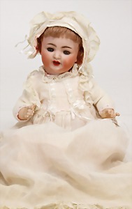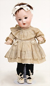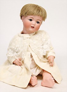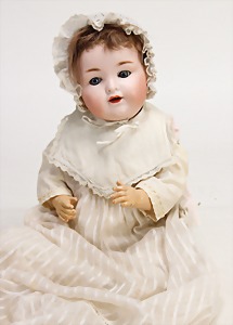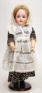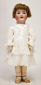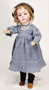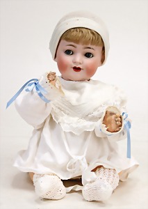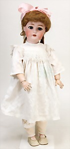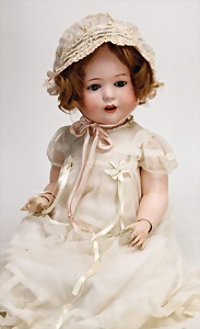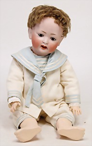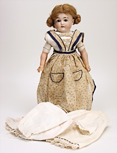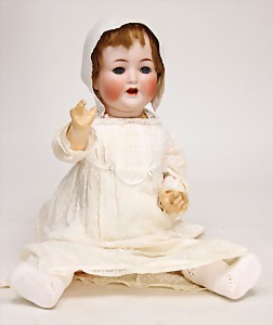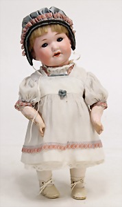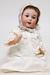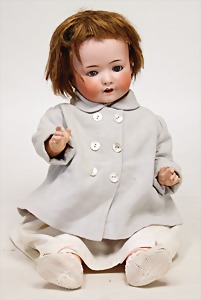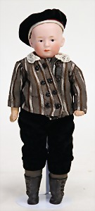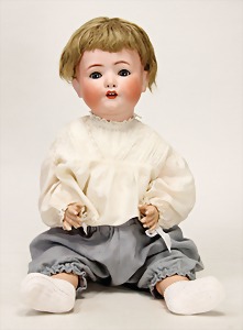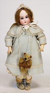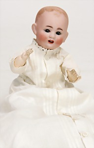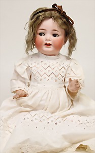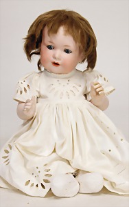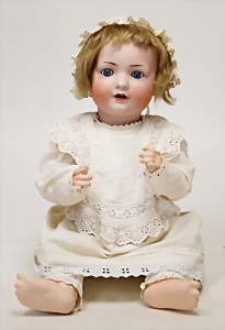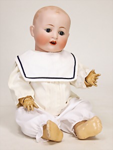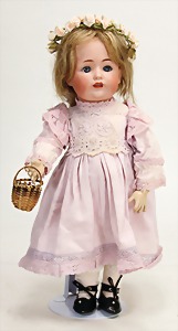 3 Porzellankopf-Puppen, 1 x gem. Simon & Halbig 21, braune Schlafaugen, off. Mund, Zähne, Masse-Stehkörper, mit anmodellierten Schuhen u. Strümpfen, 21 cm, 1 x gem. Made in Germany 12, braune fest eingesetzte Glasaugen, off. Mund, Zähne, Mohairperücke, Masse-Stehkörper, mit anmodellierten Schuhen u. Strümpfen, Schuhe nachtr. unschön modelliert, 20 cm, 1 x AM 390, braune fest eingesetzte Glasaugen, off. Mund, Zähne, Echthaarperücke, Masse-Stehkörper, mit anmodellierten Stiefeln, 23 cm