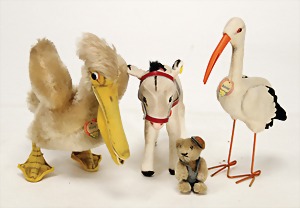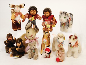Konv. 12 Teile, Wicky, komplett, Nr. auf Fahne unleserlich, Okapi, Schild und Fahne, Schild liegt lose bei, Nr. auf Fahne 6414.00, Maus mit Knopf, Lama, komplett, Nr. auf Fahne 1317.00, Froggy komplett, Nr. auf Fahne 3408.00, Schild verschlissen, Schnucki, mit Schild, Collie, komplett, Nr. auf Fahne unleserlich, Schweinchen, Reste vom Schild, Knopf, Fahne verschlissen, Pinguin, 32 cm, ohne Knopf und Schild, Wollvogel mit Knopf und Fahne, Fahne etw. verschlissen, Robbe, ohne knopf und Schild, Joggi, komplett, Nr. auf Fahne unleserlich