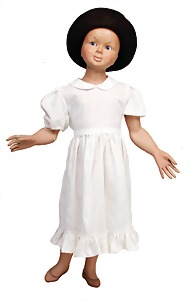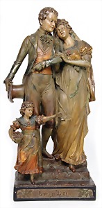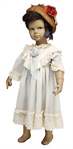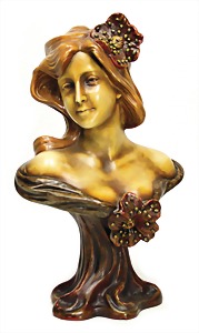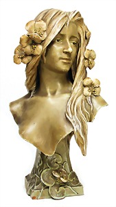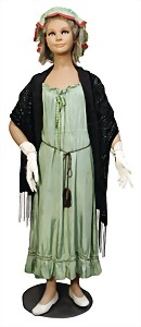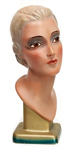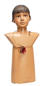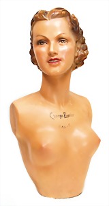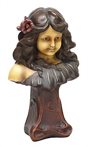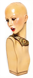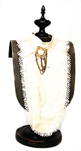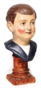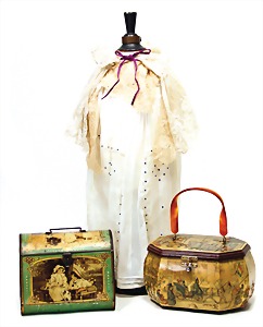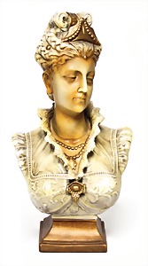 Konv. 4 tlg., 1 Büste, H: 63 cm, dazu 1 transparentes Taufkleid, dazu 1 lithogr. Blechschatulle, Kinderszene, H: 18 cm, B: 22 cm, T: 17 cm, dazu 1x Papiermaché Koffer, wohl Biedermeier, Kutschenmotiv, H: 15 cm, B: 24 cm, T: 16 cm, schönes Konv. bitte besichtigen
