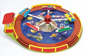 Space-Karussell, Blech- und Kunststoffteile, Made in Western Germany, Durchm. 40 cm, techn. nicht geprüft, optisch guter Zust.