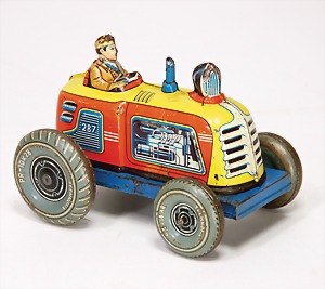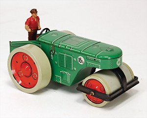 Straßenwalze, Blech lithogr., mit Fahrer, seitl. Kratzspuren, sonst guter Zust., 25 cm
