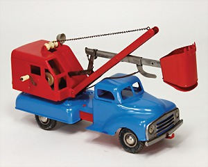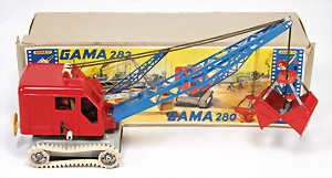 LKW mit Kranaufbau, Kunststoff, Friktionsantrieb, guter Zust., 28 cm, Made in Western-Germany