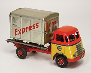 LKW mit Container, Express, 28 cm, Friktionsantrieb, Container mit minim. Kratzspuren, sonst guter Zust.