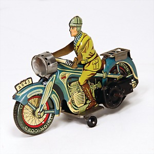 Scheinwerfer-Motorrad, Blech lithogr., funktionstüchtig, 19 cm, minim. Lackschäden, sonst guter Zust.