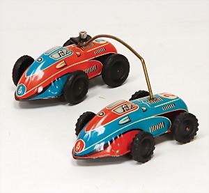 überholende Rennfahrzeuge, lithogr., Gesamtlänge: 24 cm, Made in Western Germany, Mechanik geprüft, guter Zust.