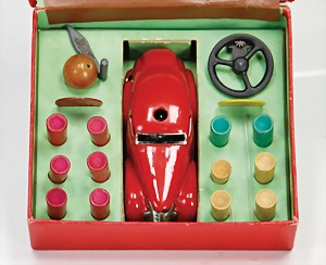 3010, Fernlenkauto, Blech, 10,5 cm, im Orig.-Kart., mit Zubehör u. Anleitung, bis auf 1 Teil kompl., Kart. an der Lasche getaped, kl. Druckstelle am Fahrzeug, sonst guter - sehr guter Zust.