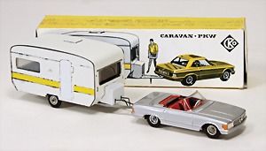 Limousine mit Wohnwagen, Made in Great Britain, Mechanik geprüft, Dach ausgebessert, 40 cm, minim. Lackschäden, sonst guter Zust.