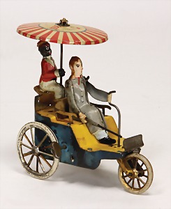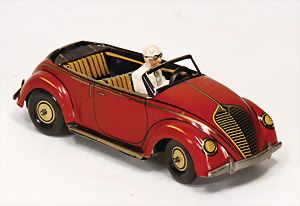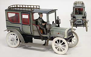 Limousine, Blech lithogr., m. Fahrerfigur, Scheiben geschliffen, m. Bremse, 2 Türen zum Öffnen, 33 cm, seltene Farbe, sehr schöner Orig.-Zust.