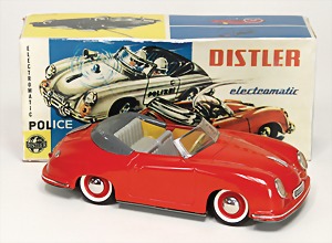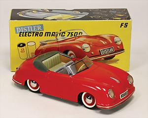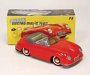 Porsche 356, 25,5 cm, Blech, mit Fernsteuerung, Gummiteile an der Fernsteuerung defekt, Schlüssel ergänzt, leicht bespielt guter Zust., Techn. nicht geprüft