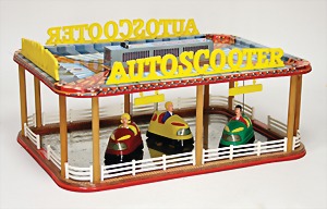 Autoscooter, Made in France, 51 cm, Blech lithogr., mit 3 Fahrzeugen, im Orig.-Kart., guter Zust.