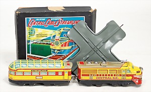 Battery operated Central Cable Streamliner, amerikanischer Triebwagenzug, Japan, Batterieantrieb, Blech lithogr., guter - sehr guter Zust., im Orig.-Kart.