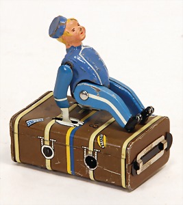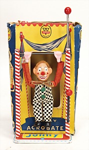 Johnny, Akrobat, Frankreich, Blech, H: 35 cm, Figur Kunststoff, hochw., Orig.-Kart. Laschen am Kart. fehlen