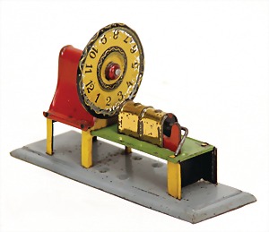 Antriebsmodell, Berglandschaft, Blech handlackiert, Grundplatte 18,5x18,5 cm, Antriebsrad fehlt, sonst sehr guter Zust.