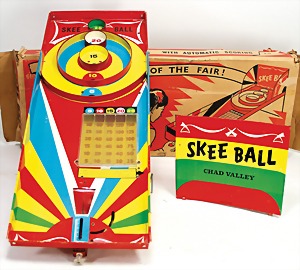 Skee ball, Blech lithogr., Lagerungsspuren, im Orig.-Kart., Kart. altersbed. verschlissen