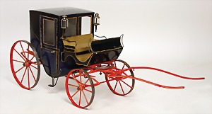 Kutsche, Blech handlackiert, m. Orig.-Deichsel, H: 31 cm, sehr außergew. Größe, guter Zust. mit kl. altersbed. Lackfehlern
