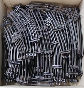 2 Kart. Gleißmaterial, Spur 0, elektr. Ausführung, gerade und gebogen, bespielt, etwas angelaufen