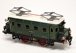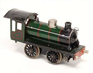 Spur 1, Schlepptenderlok B 981, grün/schwarz, Uhrwerk intakt, Tender fehlt, Krakelee-Bildung am Dach