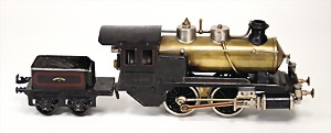 Schlepptenderlok 2B, Spiritusausführung, mit Kuhfänger, möglicherw. farbl. etwas überarbeitet, optisch guter Zust., 4-achsiger Tender, 54 cm