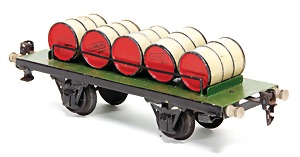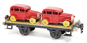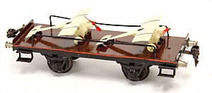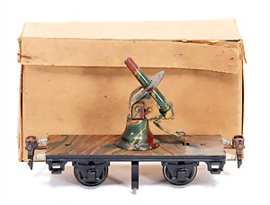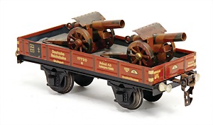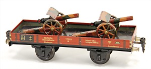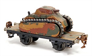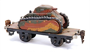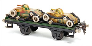 Spur 1, 1884, Plattformwagen mit 2 Blech-Panzern, 1933-1936, 24 cm, ohne Uhrwerkantrieb, Gummiketten teilw. gebrochen, teilw. fehlend, sonst guter Zust.
