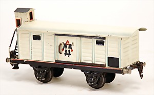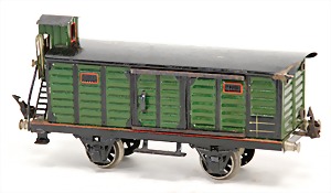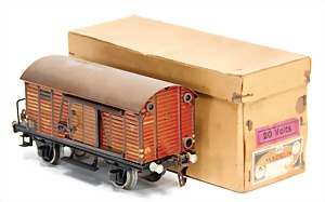 Spur 0, 1791 gedeckter Güterwagen mit Bremserhaus und Schlusslicht, 20 Volt, guter – sehr guter Zust., im Orig.-Kart.