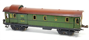 Spur 1, Gepäckwagen, 1844, 4-achsig, 42 cm, Federpuffer, ein wenig Krakelee-Bildung am Dach, sehr schöner Orig.-Zust., Dachbodenfund