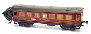Spur 1, Schlafwagen, Mitropa, 4-achsig, 37 cm, mit Inneneinrichtung, Federpuffer, guter Zust. Dachbodenfund