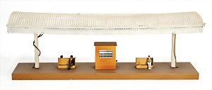 Bahnsteigüberdachung, B: 55 cm, H: 20,5 cm, kl. Druckstelle im Dach, sonst guter Zust. mit nur geringen altersbed. Lackfehlern