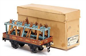 Spur 0, 1985, Jeep-Transportwagen, mit 11 Paar Holz-Skiern, im Orig.-Kart., guter Zust.