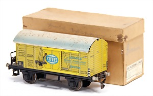 Spur 0, 2-tlg., 1785 Bananenwagen FYFFES, 2-achsig, mit Bremserhaus, Lackfehler am Dach, sonst guter – sehr guter Zust., im Orig.-Kart.