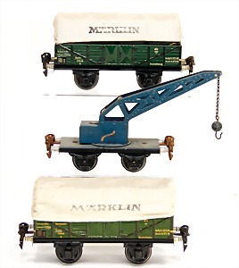 Spur 0, Kranwagen, 1964, mit Kugelhaken, guter Zust., Planwagen 1763 sehr guter Zust., im Orig.-Kart., 1763 guter Zust., ohne Kart.
