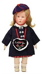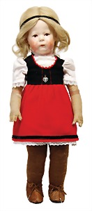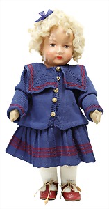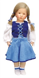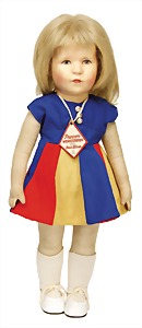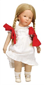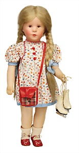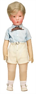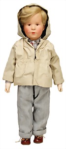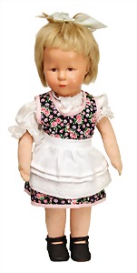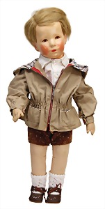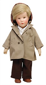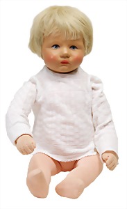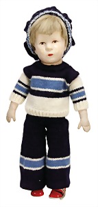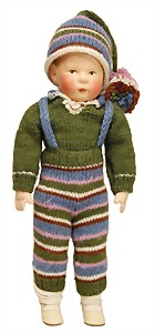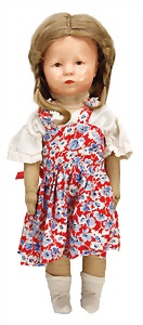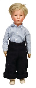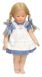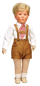 Friedebald, braune gemalte Augen, blonde Perücke, Trikot-Körper mit abgenähten Kniekehlen, 48 cm