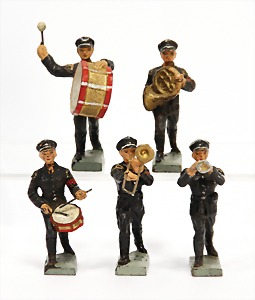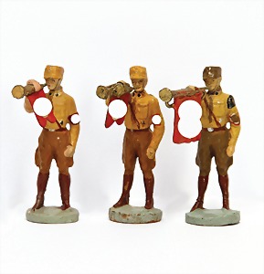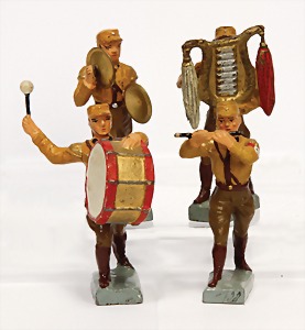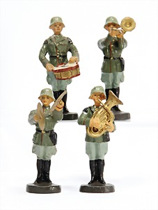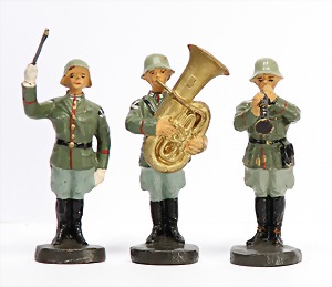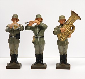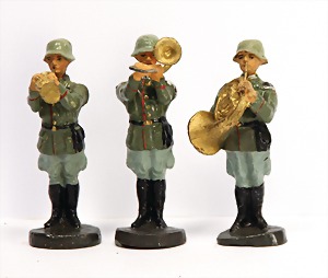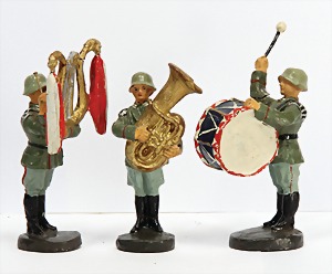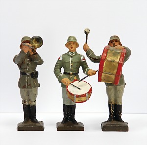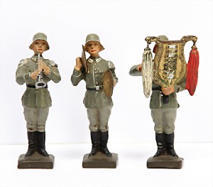 2. Weltkrieg, 7,5 cm, 3 Teile Musiker, stillgestanden, Bruchstelle am Arm des Trommlers, sonst Zust. 2