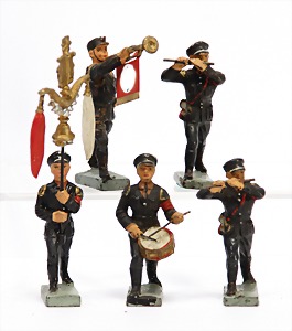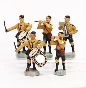 2. Weltkrieg, Masse, passend zu 7 - 7,5 cm, Pimpfe, 5 Musiker, Flötenspieler, Trommler, Fanfarenbläser, Zust. 2