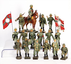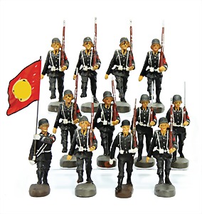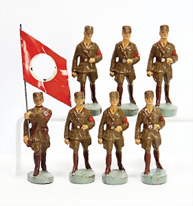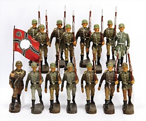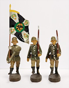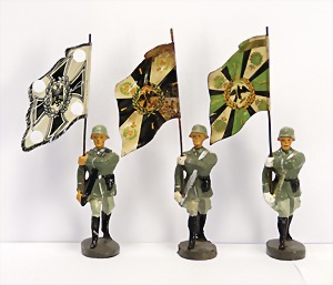 2. Weltkrieg, Masse, 7,5 cm, 2x marschierend, Stechschritt, 1 Fahnenträger, Fahne farbl. etwas ausgebessert