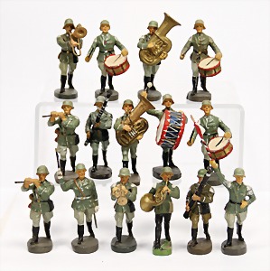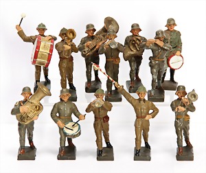 7,5 cm, 2. Weltkrieg, Masse, Dirigent, stillgestanden, 4 Figuren stillgestanden, Mann mit Trommel, 1 Mann mit Taktstock, stillgestanden, Zust. 2-3