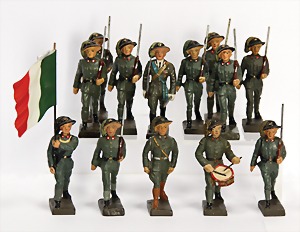 12 Teile, Masse, 2. Weltkrieg, Italiener, marschierend, darunter 1 Trommler, dazu 1 Fahnenträger, meist Zust. 2