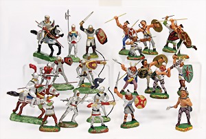 schönes Konv. Ritter u. Normannen, meist Durso, Masse, 7,5 cm, 23 Teile, stehend u. Reiter, meist Zust. 1-2