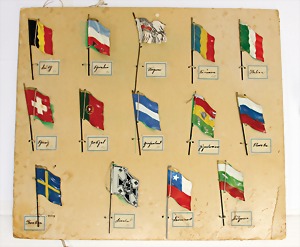 Konv. LINEOL u. andere, 12 Teile marschierend, 1 Figur kniend, 2 Fahnenträger, davon 1 Fahne mit Lackschäden, 1 Reiter, passend zu 7,5 cm, meist Zust. 2