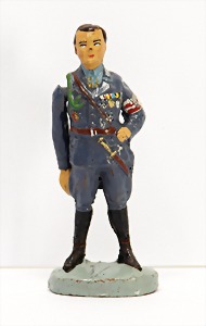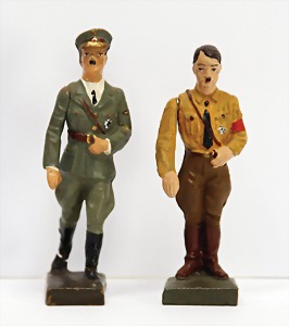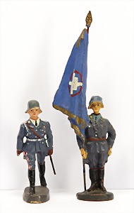 2-tlg., Masse, 7,5 cm, 1 Fahnenträger des deutschen Luftsportverbandes, stillgestanden, Zust. 2-, kl. Ecke am Sockel weggebrochen, 1x Luftwaffe marschierend
