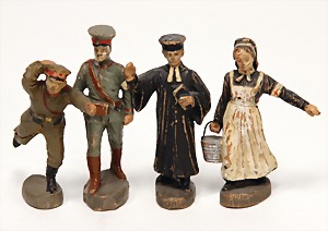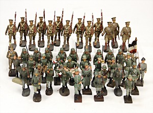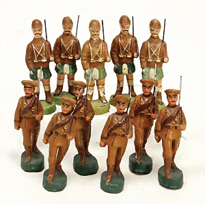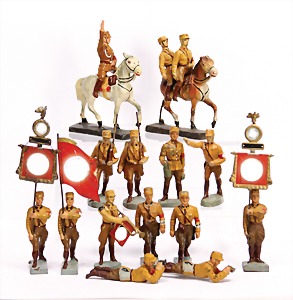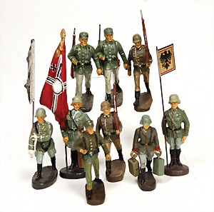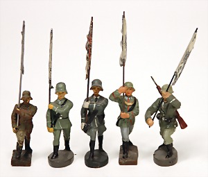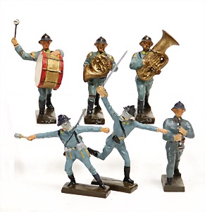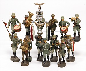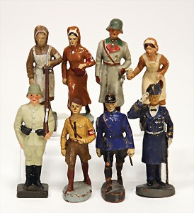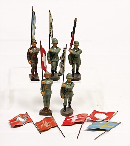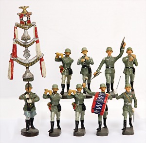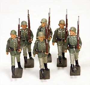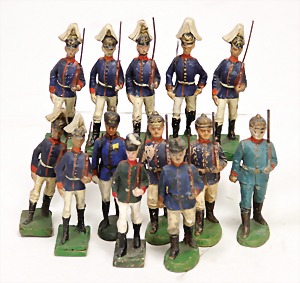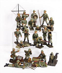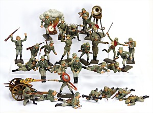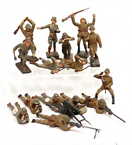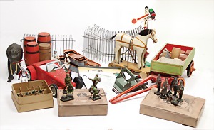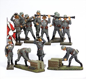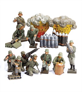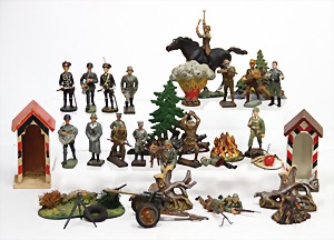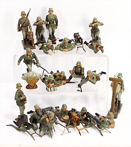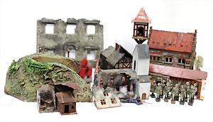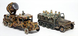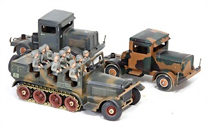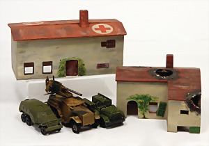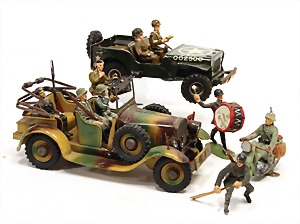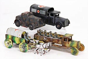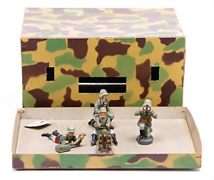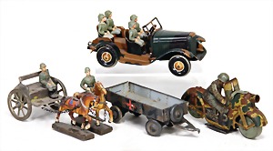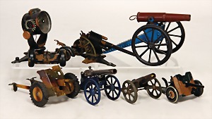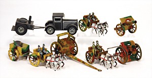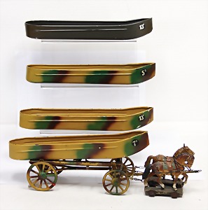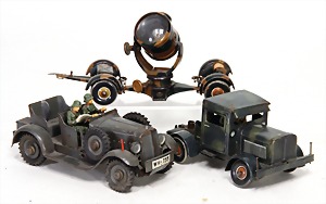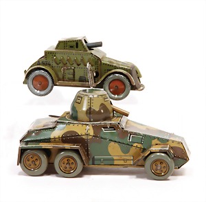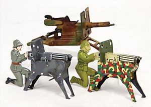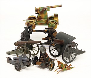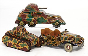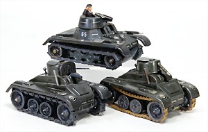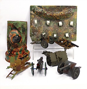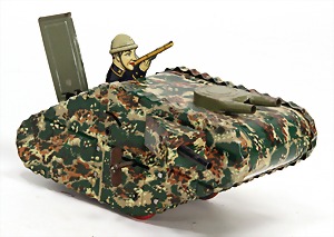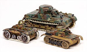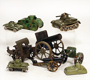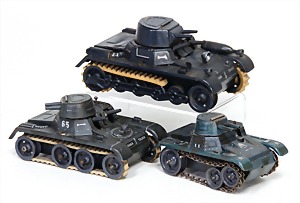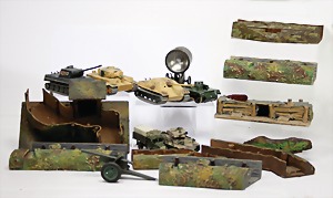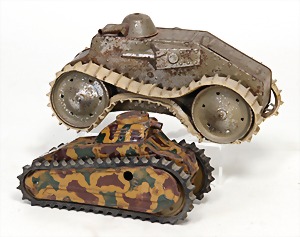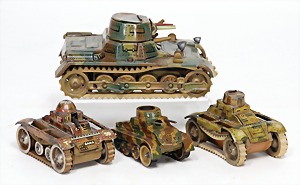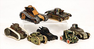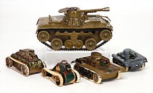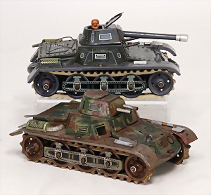Tank, Blech lithogr., Uhrwerk defekt, Schalthebel fehlt, Gescha Tank, Blech lithogr., Uhrwerk defekt, bespielt, Kleinteile fehlen, kl. Gamma Tank, 10,5 cm, bespielt, Uhrwerk intakt, Gummiketten nicht orig., kl. Tank PN, 9,5 cm, Uhrwerk intakt, gut, kl. Tank, 10 cm, Uhrwerk defekt, 1 Kette gebrochen