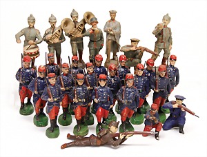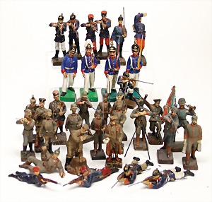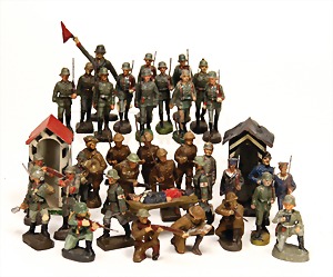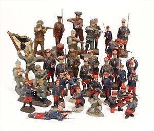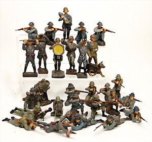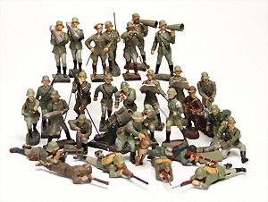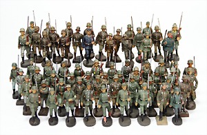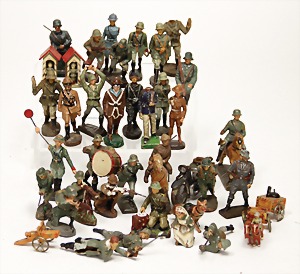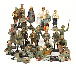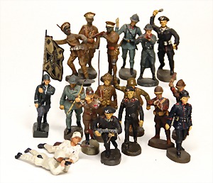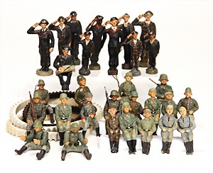 Konv. ca. 30-tlg., Massefiguren, 2. Weltkrieg, untersch. Hersteller, sitzende Figuren, Panzerführer, dazu Kleinteile, einige Ketten (Gummi), meist Zust. 2-3