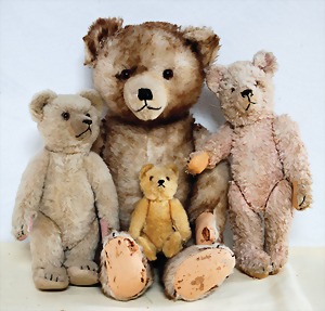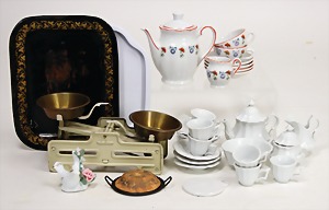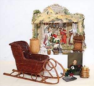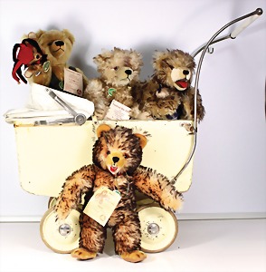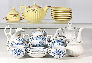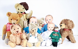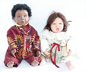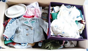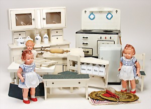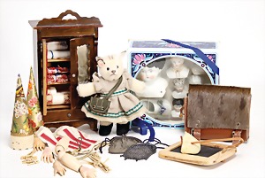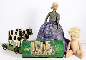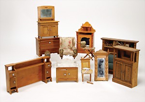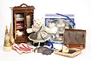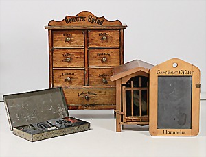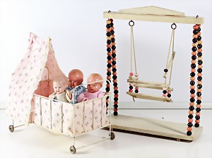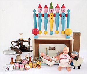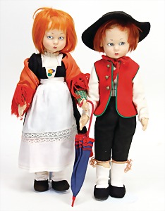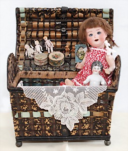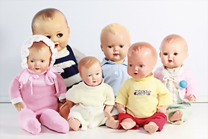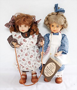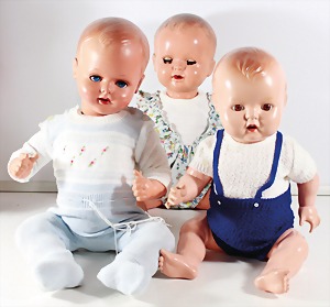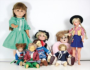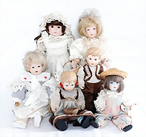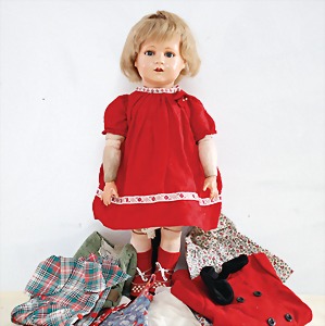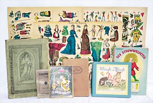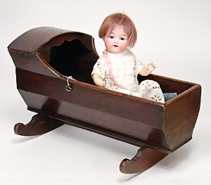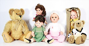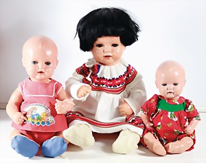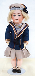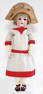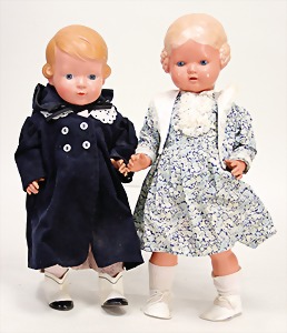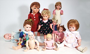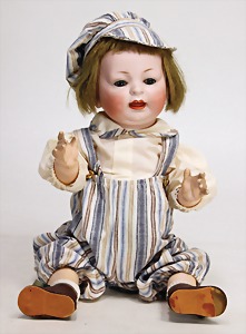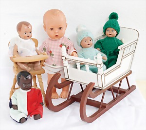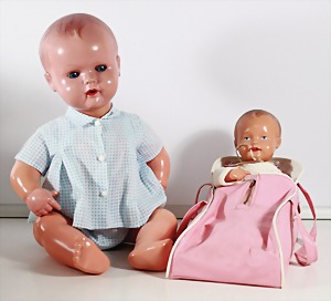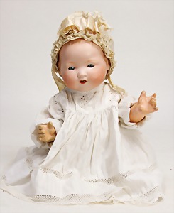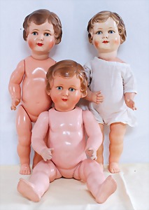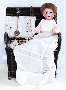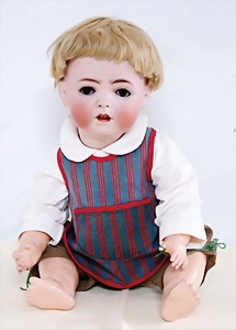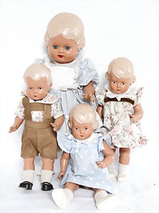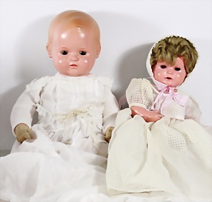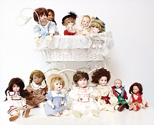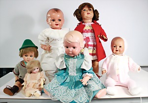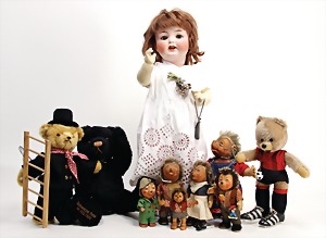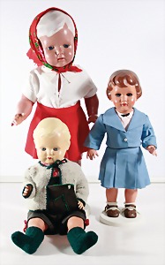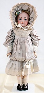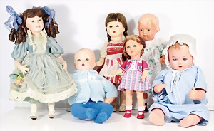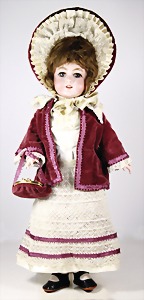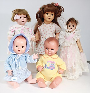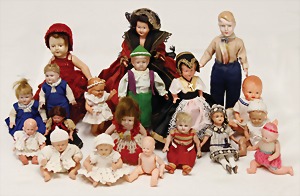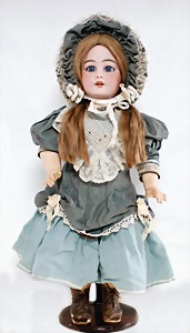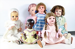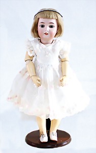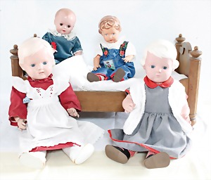Biskuit-Porzellan-Puppen, 1x gem. DEP Nr. 9, blaue Schlafaugen, offener Mund, oben Zahnreihe, durchst. Ohren, Gliederkörper, Mohair-Perücke, 52 cm, dazu 1x Biskuit-Porzellan-Brustblattkopf, gem. DEP Germany Nr. 9, Simon & Halbig, braune Schlafaugen, offener Mund, oben Zahnreihe, durchst. Ohren, gegliederte Arme, Lederkörper, gegliederte Beine, 55 cm, dazu Biskuit-Porzellan Kurbelkopf, K&R, gem. 402, braune Schelmenaugen, offener Mund, oben Zahnreihe, durchst. Ohren, 43 cm, Gliederkörper 1x übermalt, dazu 1x Reproduktion, König & Wernicke, Nr. 1070, Biskuit-Porzellan-Kurbelkopf, blaue Glasaugen, offener Mund, oben 2 Zähne, Gliederkörper, 50 cm, alte Kleidung