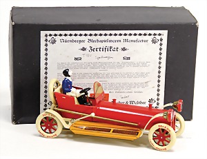 Konv. 3 Celluloid-Puppen, 1x gem. Germany, H: 16 cm, braune gemalte Augen, bewegl. Arme und Beine, modell. Schuhe und Strümpfe, 1x Celluloid-Puppe, bespielt, SoR, Nackenmarkierung 15, 1 Hochstuhl, H: 20 cm, Holz, mit Celluloid-Puppe, bewegl. Arme und Beine, ausmodell. Schuhe und Strümpfe, Nase weggebrochen, 1 Biege-Figur, Ente, Lenci?, 12 cm, 1 Steiff Replica-Bär, weiß, 16 cm, mit Knopf und Fahne
