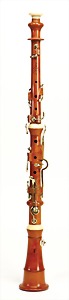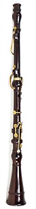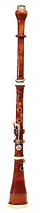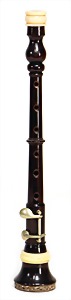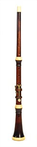 Schalmei, aus Rosenholz, unsign., 31 cm lang, franz. Volks-Schalmei, mit 6 Grifflöchern, 1 Klappe, Ring am Schallbecher fehlt, um ca. 1880, Zust. 2 #582#