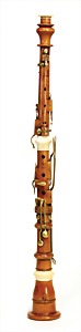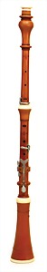 Barock-Oboe, aus Buchsbaum gebeizt, unsign., London, 2 Klappen in Messing in Wulst, 4 Elfenbeinringe, um ca. 1760, 58,8cm, A=415, Holz Zust. 1, Mechanik Zust. 1, klingt wunderschön, #323#