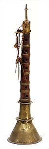 Chinesische Schalmei, So-Na, aus Holz, mit Messingbecher, unsign., mit 7 Grifflöchern vorne, 1 Daumenloch, kein Rohr, 1950 – 2000, Zust. 1 #492#