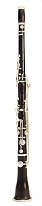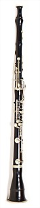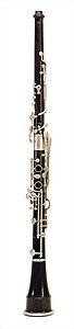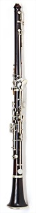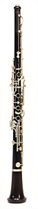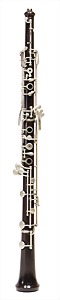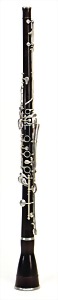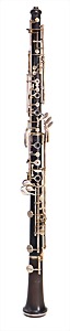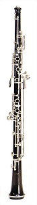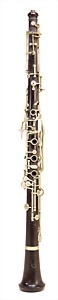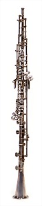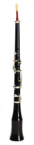 Oboe, mit Klarinettenumbau, aus Ebenholz, schwarz, Barret-System, Oboe mit Klarinettenanteil, 3-tlg., mit einfachem Rohr auf Kunststoff-Mundstück, Mischung von Oboe u. Klarinette, mit Barret-System 5, um 1870, Holz Zust. 2-3, Mechanik Zust. 3 #400#