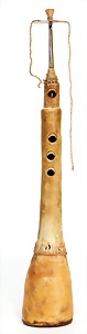 Schalmei, Algheita aus Nigeria, unsign., Holz u. Leder, lederüberzogener Holzkörper mit glockenförmigem Schallstück, 4 Grifflöcher, um 1900, Zust. 1 #244#