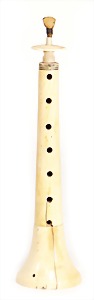 Indien, Mukha-Veena, aus Elfenbein, unsign., Gesamtlänge 22 cm, indische Schalmei, 7 Grifflöcher, 1 Daumenloch, 2 zusammengeklebte Teile, Korpus u. Becher, 1850-1900, Zust. 2-3, da Riss durch den unteren Teil des Instruments #481#