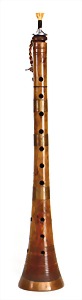 Sukra (Zokra), unsign., aus Olivenholz, 34 cm, 7 vorderständige Grifflöcher, 1 Daumenloch, oberer Teil mit drehbarer Gabel, sehr schön gemasert, 1950-2000, Zust. 1 #707#